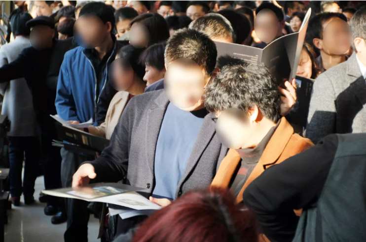 有购房意向的客户在工作人员的引导下排队填写铂金卡的申领表,申请成功后可享10000元的购房优惠。
